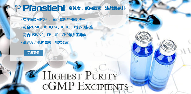 “熱烈祝賀Pfanstiehl的注射級甘氨酸Glycine(G-140)喜獲CDE登記號F20250000403, 這是Pfanstiehl產品獲得的第18個CDE登記號!”甘氨酸在醫藥輔料制劑中應用廣泛,, 可作為緩沖劑,增溶劑,穩定劑等,具有諸多優勢。Pfanstiehl秉承一貫高品質理念,為滿足全球生物制藥行業對于高品質甘氨酸的需求,隆重推出的注射級甘氨酸Glycine (G-140), 具有超高純度,超低內毒素,超低金屬殘留的特點,單獨檢測29種金屬離子,并且新增DNA,RNA,DNA酶,RNA酶和脂肪酶,亞硝酸鹽等多項質量指標的檢測,符合多國藥典規定(USP, EP, BP, JPE, ChP),可用于生物治療性藥物和疫苗的生產。產品信息:· 產品名稱:Glycine, High Purity, Low Endotoxin, Low Metals, USP, EP, BP, JPE, ChP (G-140)· 中文名稱:甘氨酸· 分子式:C2H5NO2· 分子量:75.07 g / mol· CAS號:56-40-6· 產品貨號:G-140產品特點: · 超高純度,超低內毒素,超低微生物含量,超低金屬雜質殘留· 質量指標新增DNA,RNA,DNA酶,RNA酶,脂肪酶和亞硝酸鹽檢測· 符合多國藥典:USP, EP, BP, JPE, ChP· 符合ICH Q3D標準· 符合GMP標準· 已獲DMF和CDE登記號 產品應用:· 緩沖劑· 穩定劑· 增溶劑如果您對Pfanstiehl注射級別Glycine G-140感興趣,歡迎聯系Pfanstiehl 中國區代理商北京西美杰科技有限公司獲得如下詳細的產品概況說明文件和測試樣品。Pfanstiehl Inc.最新產品系列如下,歡迎聯系北京西美杰科技有限公司獲取100g裝免費樣品。北京西美杰科技有限公司為Pfanstiehl中國代理,為客戶提供完善的技術支持與售后服務。歡迎撥打西美杰客服電話400-050-4006或者登陸網站www_xmjsci_com.xj8865.com了解更多信息。 更多>